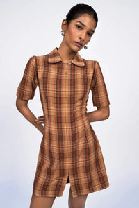 Sleek and contemporary, this mid-thigh zipper dress features a curved-edge collar that adds a soft, feminine touch to its structured design. The front zip closure offers both style and ease, while tailored waist darts create a flattering, contoured fit. A versatile piece that transitions effortlessly from day to night.