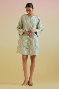 Our Ziva Jacket features a clean round neck , mid-length jacket silhouette that beautifully frames the neckline and enhances the natural shape. The meticulously tailored fit highlights the wearer’s poise, while the subtle textural richness of the brocade adds depth and quiet opulence. Perfect for semi-winter evening occasions, it offers a balance of comfort, elegance, and understated glamour.”