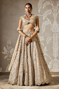 The Ziva Lehenga Set dazzles with an allover embroidered net cap-sleeve blouse paired with an exquisitely embroidered raw silk lehenga. Completed with a net dupatta framed by four embroidered borders, this ensemble is a stunning fusion of intricate craftsmanship and regal elegance for the modern muse.