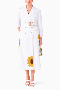 Make a statement with the Zoa White Denim Trench Dress, a unique blend of style and comfort. This double-breasted denim dress features stunning 3D floral applique at the front, adding a touch of whimsy. A detachable wooden buckle belt cinches the waist, while the wooden buttons and contrast piping details enhance its chic appeal. With practical front pockets and a frayed hemline, this comfort-fit dress is perfect for effortless everyday elegance.