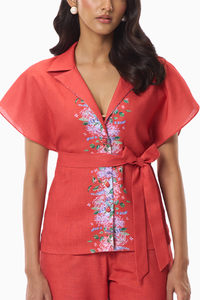 The Zoella Short Sleeve Shirt offers a touch of high-style flair to your daily wardrobe. Featuring flared short sleeves and a button-down collar, it boasts a regular fit and classic silhouette, accented by a front tie belt. Whether paired with sneakers for a casual vibe or dress shoes for a polished ensemble, it effortlessly elevates any look.