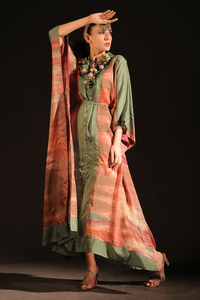 Introducing the epitome of sophistication and comfort: the shirt collar front open kaftan. This kaftan redefines luxury with its exquisite habutai silk fabric, known for its smooth texture and graceful drape. The shirt collar adds a touch of tailored elegance to the relaxed silhouette, creating a versatile piece that transitions effortlessly from day to evening wear. Its front-open design enhances breathability and movement, while the included belt allows for customizable styling. Whether lounging at home or attending a stylish gathering, this kaftan promises unmatched comfort and timeless elegance.